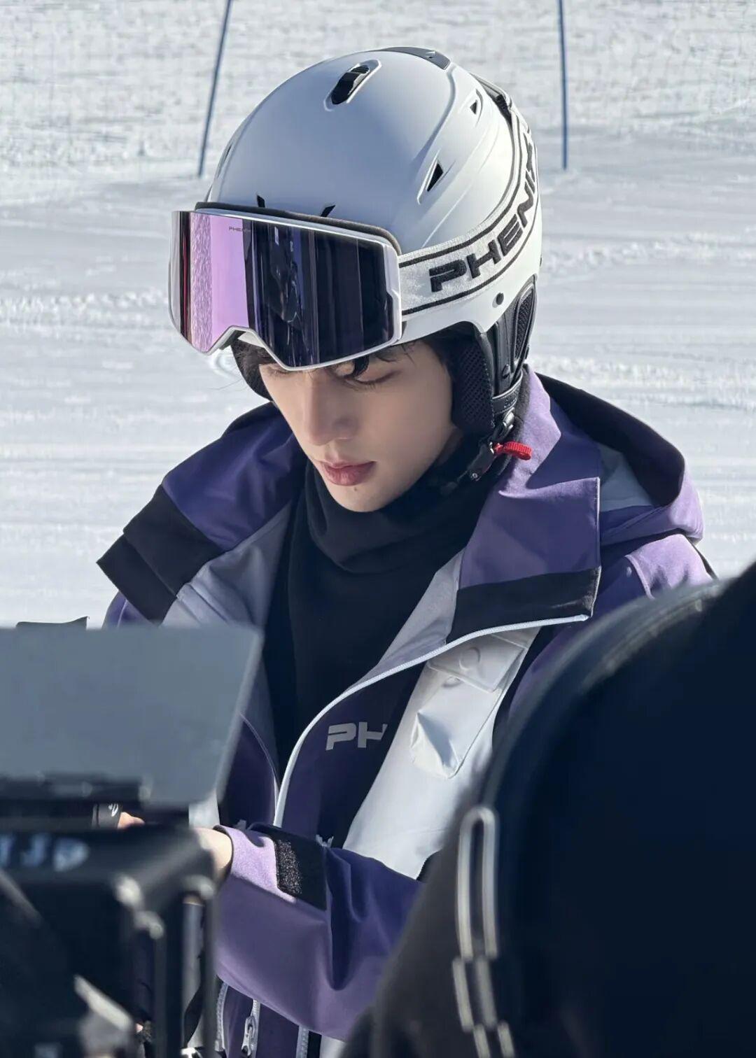 王安宇踏雪而来,紫白雪服倾覆冬日萧瑟,晕开一抹柔和暖意。额前卷毛自带慵懒少年感,利落身形勾勒出清爽干净的气质,在白雪间温柔又耀眼。