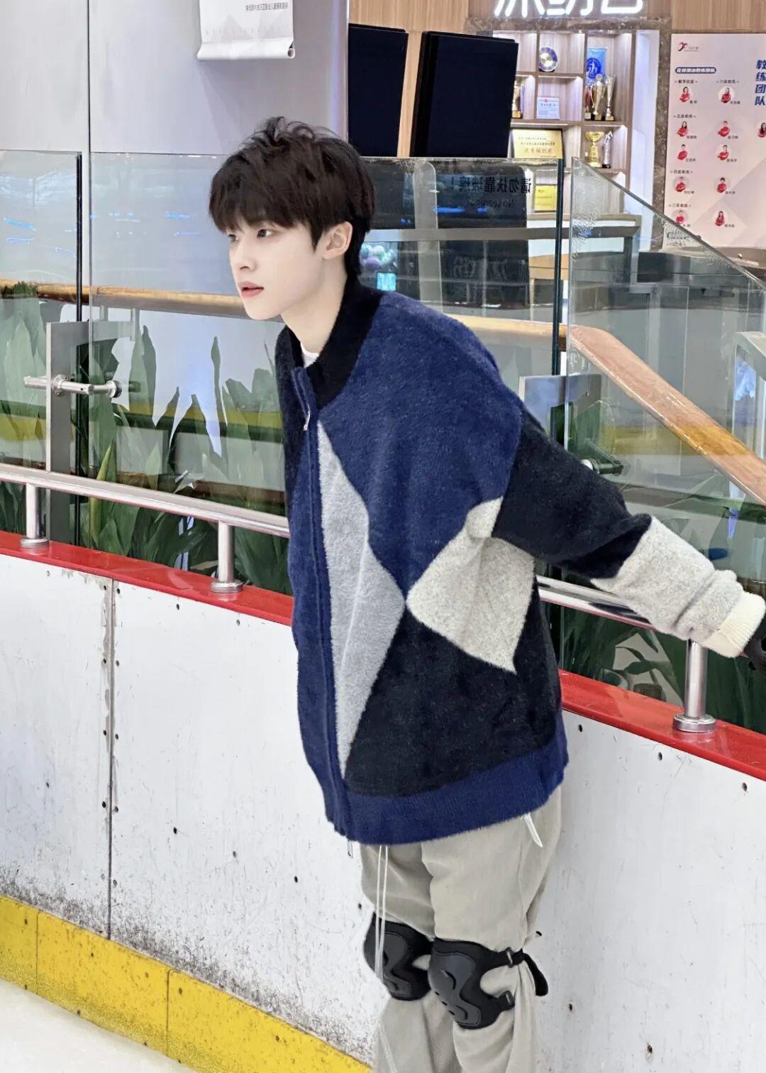 朴元彬与好友同行,简约黑色外套内搭中式盘扣上衣,沉稳中藏着东方雅致。下身搭配随性牛仔裤,利落又自在,于冰场中自成格调。